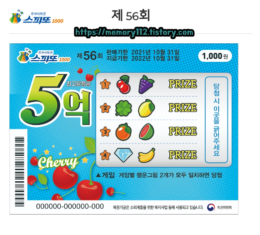 참고로 이전 스피또1000 56회차는 이런 모습이었습니다.