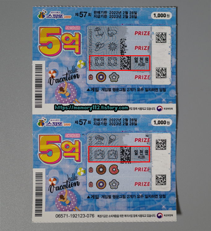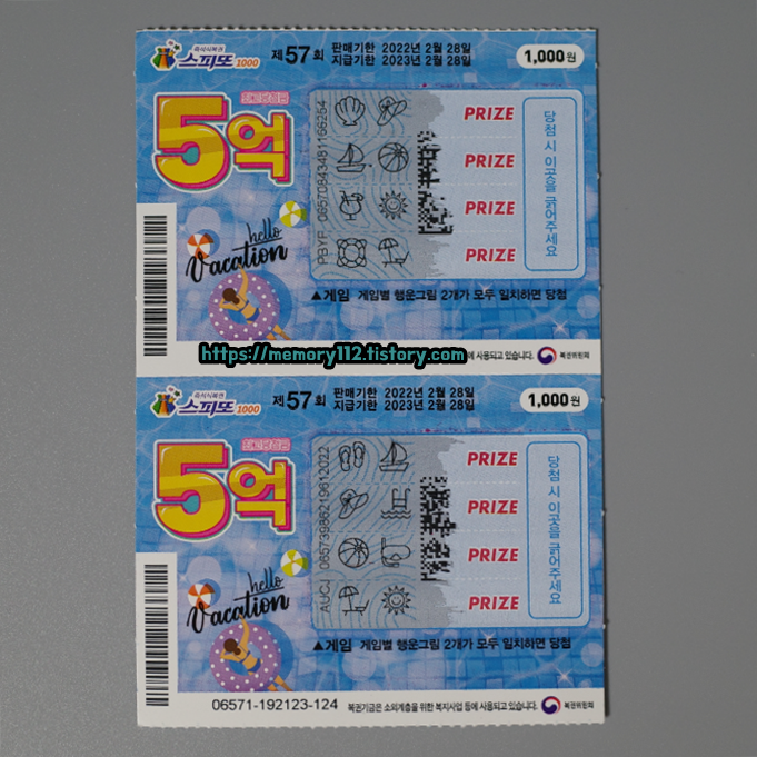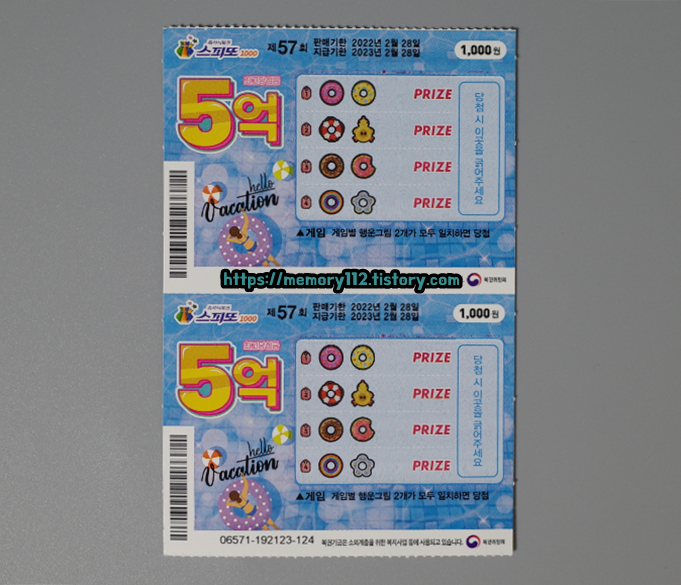 스피또1000 57회차 복권 디자인입니다. 아주 여름 여름 한 디자인이죠?