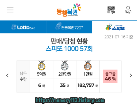 참고로 남은 당첨 복권 수량 업데이트 날짜는 21년 07월 16일 금요일입니다.