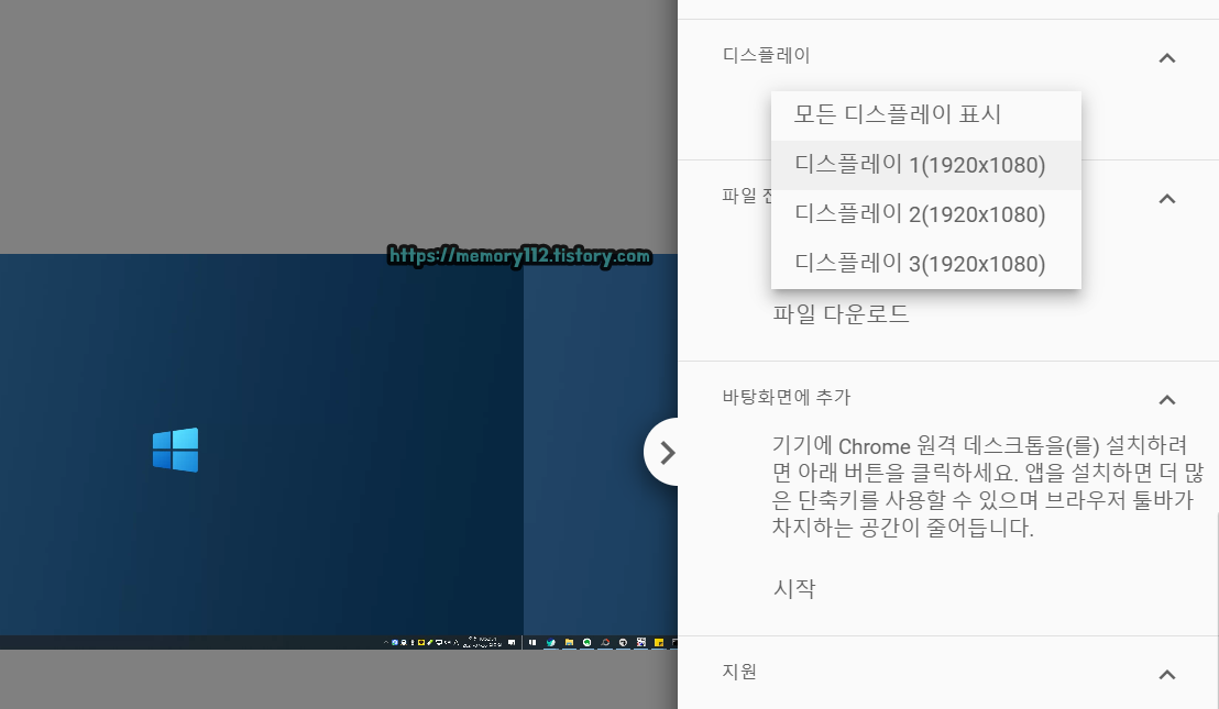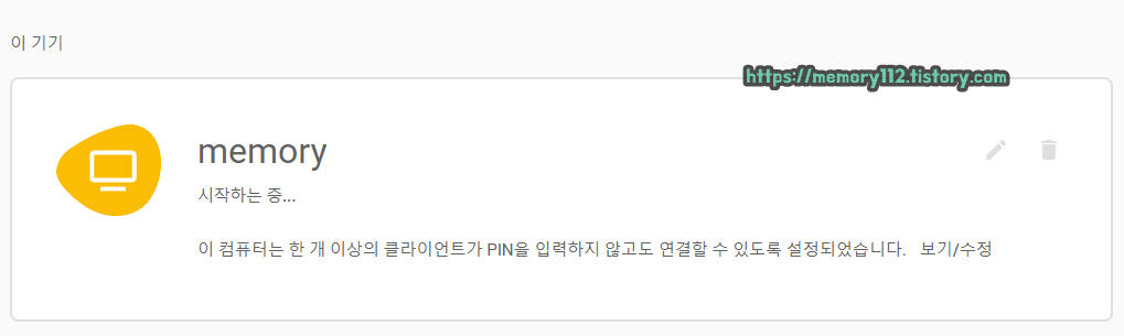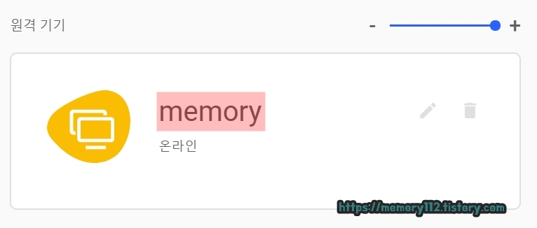 구글 계정 로그인 및 연동 후, 원격제어 연결할 컴퓨터(memory)를 터치해줍니다.