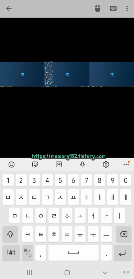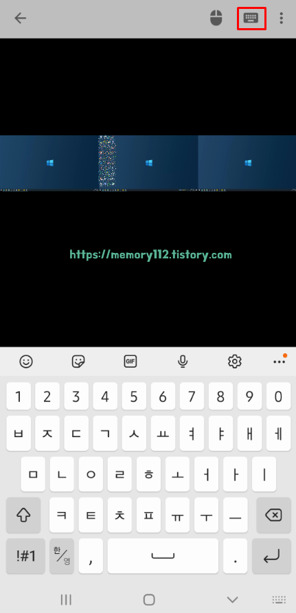 키보드 입력 : 화면에 세 손가락을 아래로 내리기 (이후, 우측 상단에 보이는 키보드 모양 아이콘 터치)