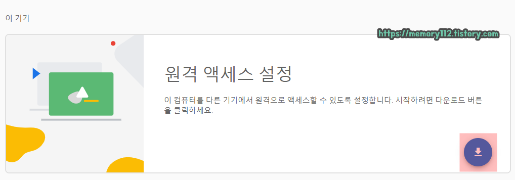 구글 계정 로그인 완료하면, 위 사진처럼 원격 액세스 설정 창으로 이동될 것입니다. 여기서 우측에 보이는 다운로드 버튼을 눌러줍니다.