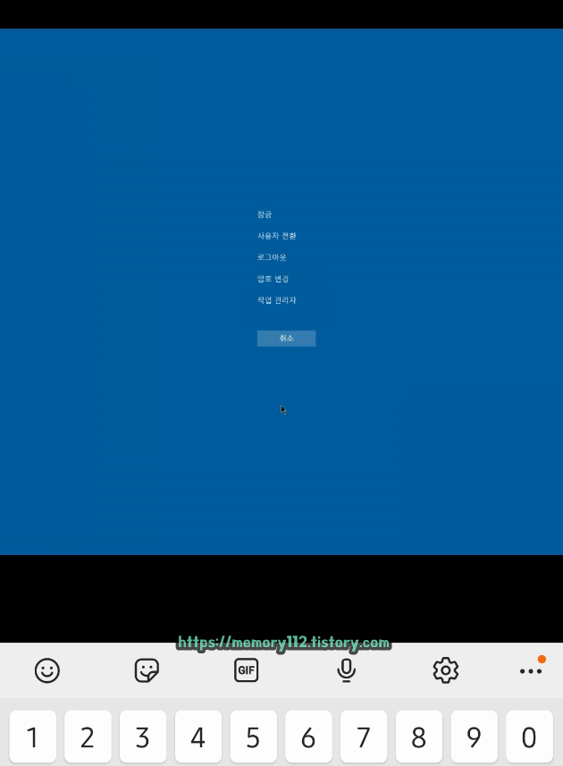 원격제어 옵션에 있는 'Ctrl+Alt+Del 전송'을 눌렀을 때 모습입니다. 해당 옵션을 통해 이렇게 모바일 환경에서도 작업관리자를 켤 수 있습니다.