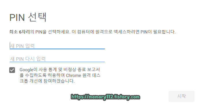 구글 크롬 원격제어 이용 등록 시 입력했던 핀 번호 6자리를 입력해줍니다.