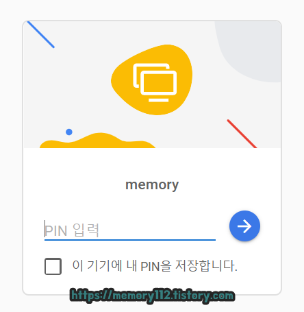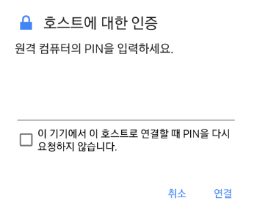 구글 크롬 원격제어에 연결하려면 핀 번호 6자리 입력이 필요합니다. 아래에 보이는 '이 기기에 내 PIN을 저장합니다.'를 체크하고 넘어가면 이후부터는 핀 번호 입력 절차 없이 바로 원격제어로 연결됩니다.