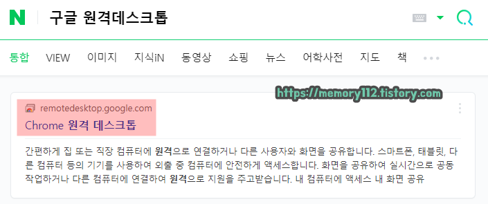 먼저 '구글 원격 데스크톱'이라고 검색한 후, 검색 결과에 나오는 홈페이지에 접속해줍니다.