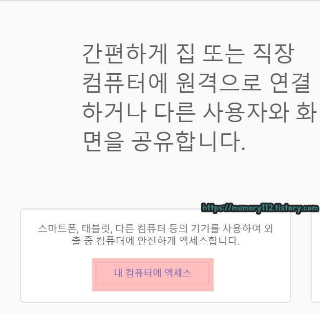 홈페이지 접속 후, 좌측에 보이는 '내 컴퓨터에 액세스'를 눌러줍니다.