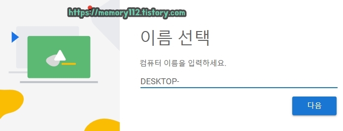 구글 원격제어 데스크톱 이용 등록을 완료했으니, 이제 다른 컴퓨터에서 내 컴퓨터를 한 번 연결해볼까요?
