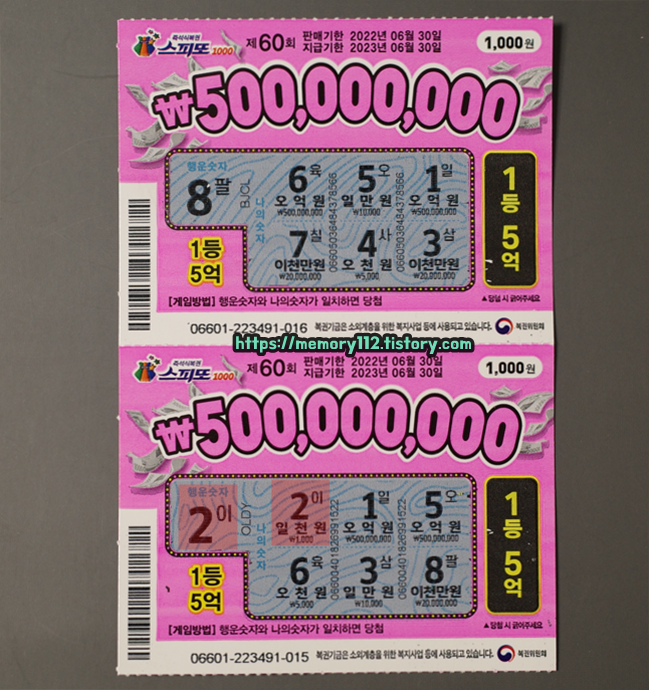 그런데 그거 알고 계신가요? 이번 회차 복권 디자인은 이전 회차 복권 디자인과 정말 똑같습니다. 물 빠진 색상으로 변경됐다는 것만 빼고요. 음.. 뭐 복권 디자인이 중요한 것은 아니죠. 당첨이 중요하지..
