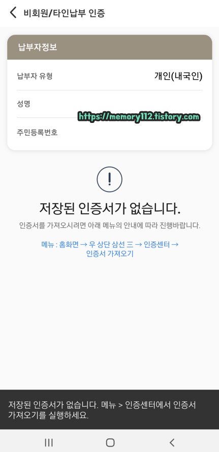 그런데 만약 저장된 공동인증서가 없다면, 자동차세 납부 절차를 진행할 수 없으니 참고하세요.