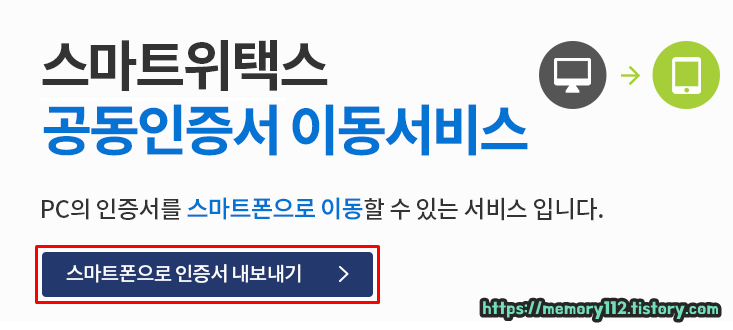 '스마트폰으로 인증서 내보내기'를 눌러줍니다.