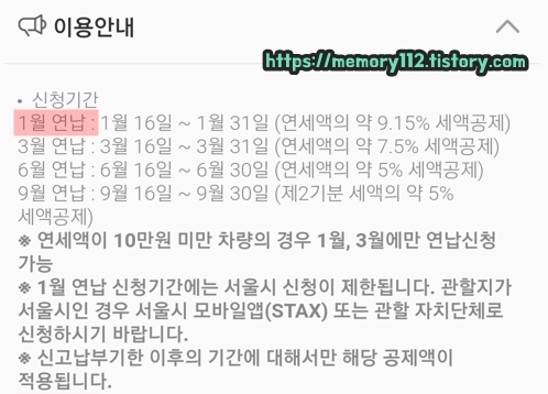 ※ 자동차세 1월 연납 시 연세액의 9.15%를 할인받습니다.