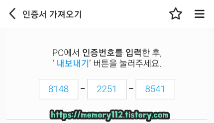 이렇게 인증번호가 생성됐다면, 이제 PC로 가줍니다.