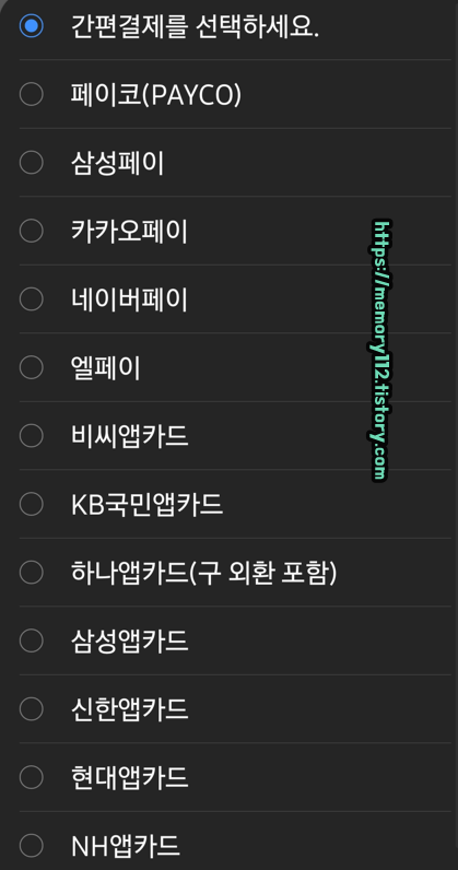 간편 결제는 페이코, 삼성페이, 카카오페이, 네이버페이 등으로 납부 가능합니다.