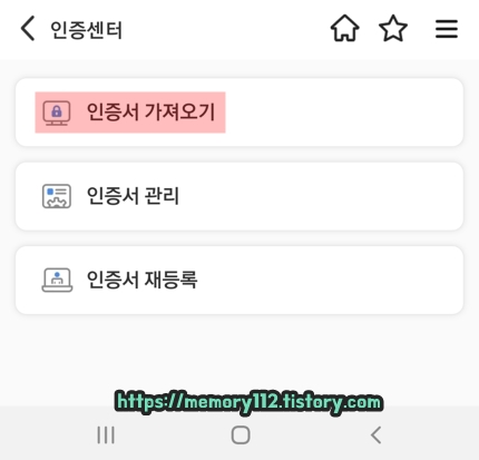 이어서 '인증서 가져오기'를 눌러줍니다.