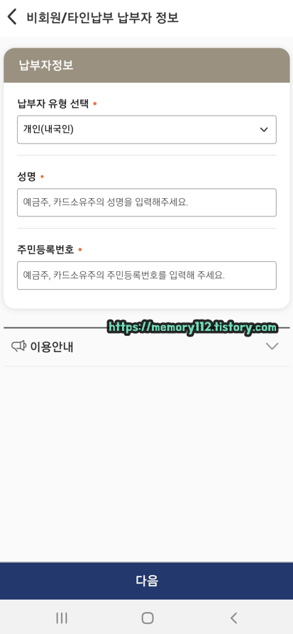 납부자의 성명과 주민등록번호를 입력해줍니다.