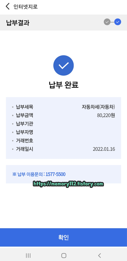 드디어 자동차세 연납 신청부터 납부까지 완료했네요. 휴대폰에 공동인증서가 있음에도 불구하고 PC에 있는 공동인증서를 옮겨줘야 하는 것 때문에 조금 번거롭긴 했지만 어쨌든 휴대폰으로도 납부할 수 있어서 좋았네요.