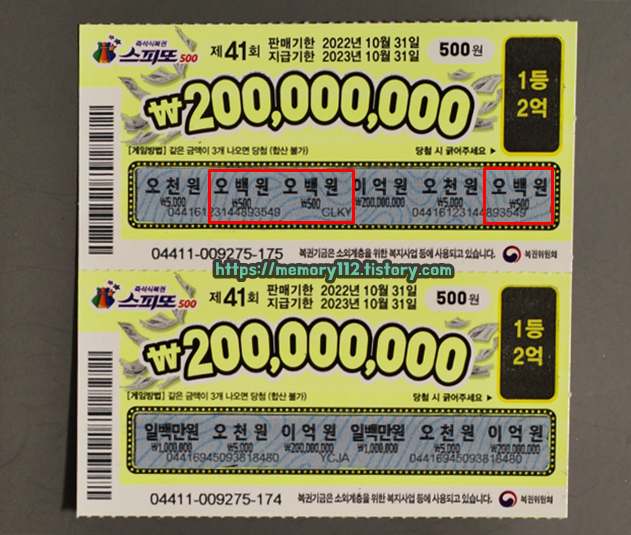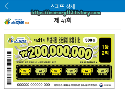 ※ 스피또 500 1장당 가격은 500원입니다.