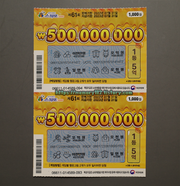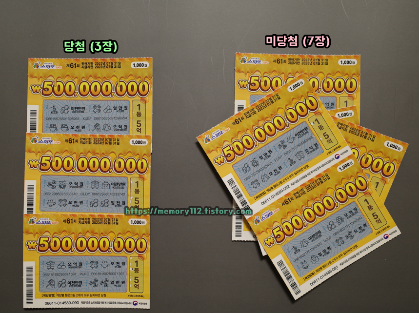 <스피또1000 61회 남은 당첨 복권>