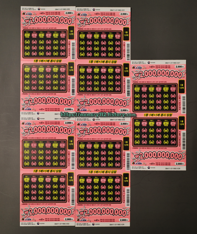 그런데 저는 왜 이걸 이제 가져왔냐.. 복권 구매는 지금보다 엄청 이전인데 그 사실을 까맣게 잊어버리고, 이제서야 이렇게 부랴부랴 포스팅하고 있기 때문입니다.. 1등 10억 복권이 모두 나왔다는 사실을 확인하고, 얼마나 슬프던지.. 흑.. 복권 긁어보기도 전에 힘이 빠지네요.