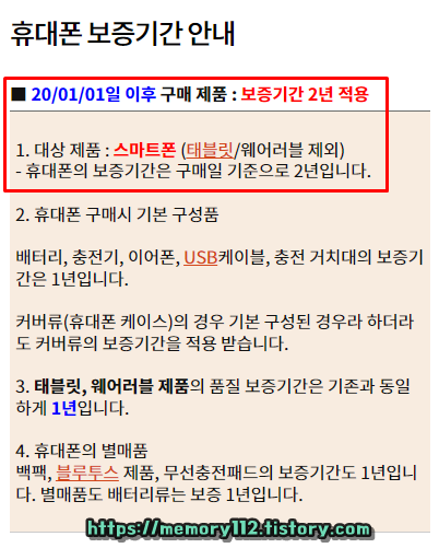 ※ 갤럭시탭 같은 태블릿이나 갤럭시 워치 같은 웨어러블 제품은 보증 기간이 1년입니다.