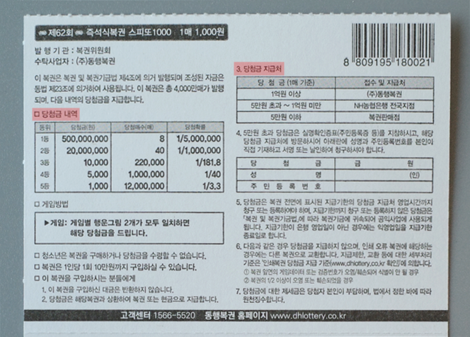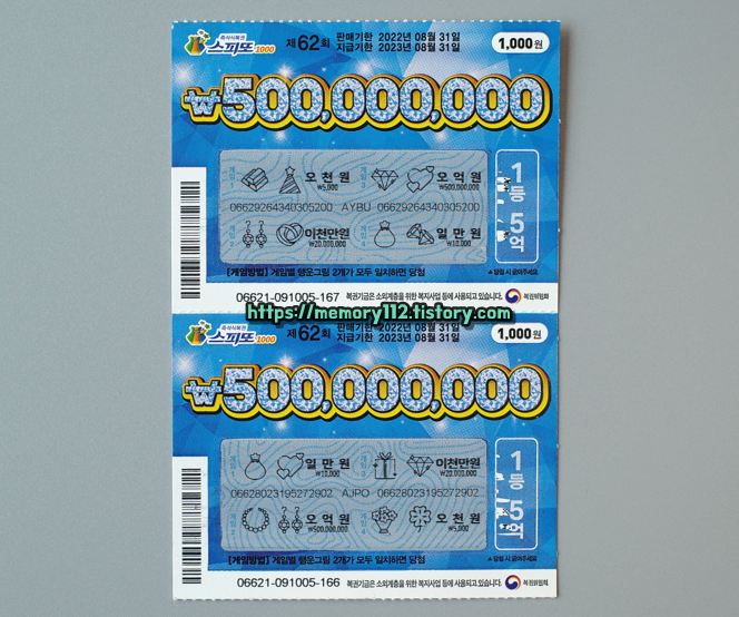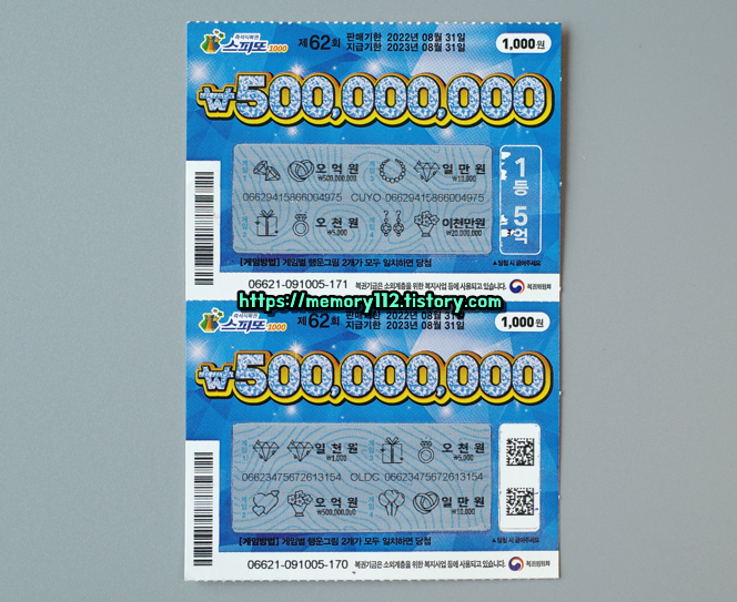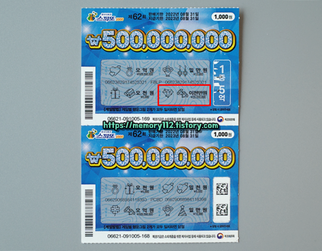 <스피또1000 62회차 남은 당첨 복권>