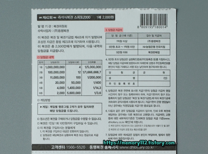 스피또2000 당첨 확률과 당첨금 지급처를 알아보도록 하겠습니다.