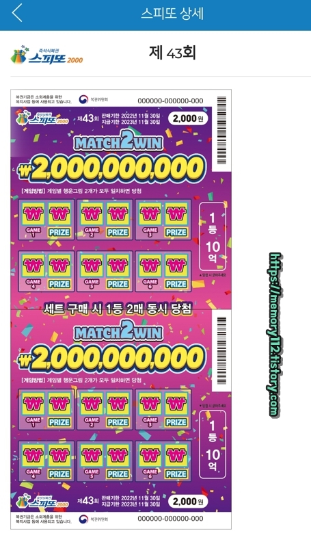 ※ 스피또2000은 1등 10억 복권이 2장 연속으로 발매됨.