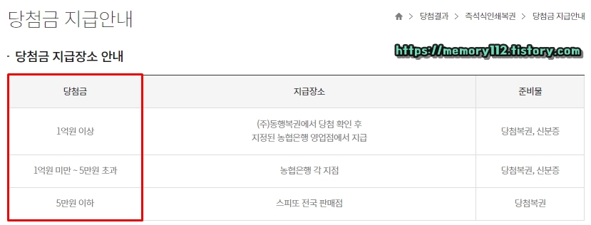 1억원 미만 ~ 5만원 초과라면, 당첨복권과 신분증을 챙겨 전국에 있는 농협은행으로 가면 됩니다.