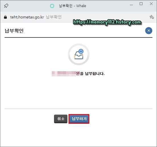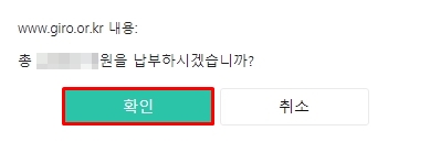 위와 같이 납부 확인 창이 뜨면 '납부하기'를 눌러줍니다.