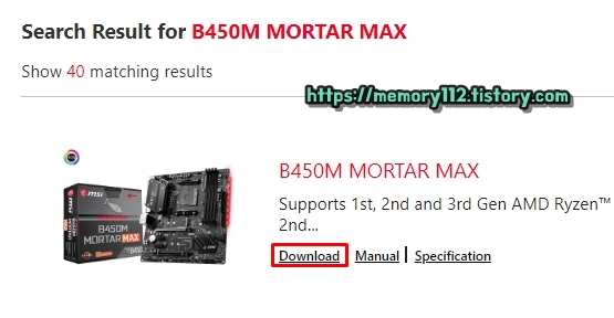 검색 결과에 나오는 메인보드를 확인한 후, 아래에 보이는 "Download"를 눌러줍니다.