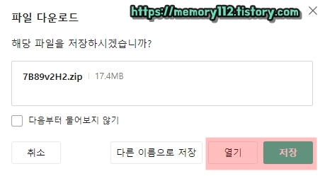 해당 파일을 열기 또는 저장해줍니다.