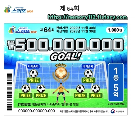 스피또1000 64회차 복권 디자인입니다. 이번에는 축구 컨셉의 복권 디자인이네요.