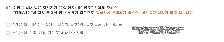 게시 중단 요청 사유를 잘못 선택했거나 소명 내용 및 자료가 부족하다면 게시 중단 요청을 새롭게 다시 해야 할 수도 있으니 참고하세요.