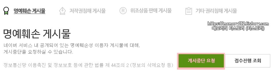 먼저 "네이버 게시중단 요청 서비스 홈페이지"에 접속해줍니다.