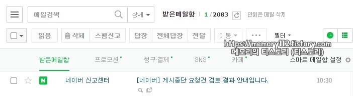게시 중단 검토 결과 내용은 메일을 통해 확인할 수 있습니다.