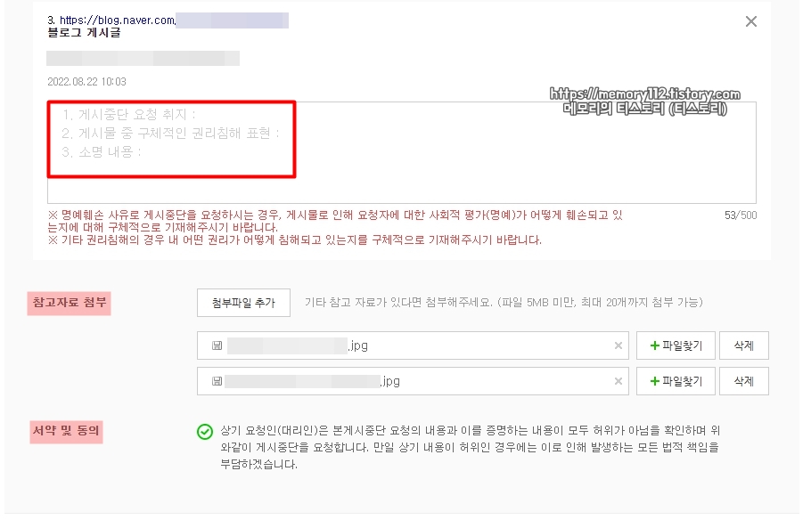 ※ 참고 자료 첨부는 필수가 아닙니다. 소명 내용에 원본 게시물 주소만 넣어도 통과될 수 있습니다.