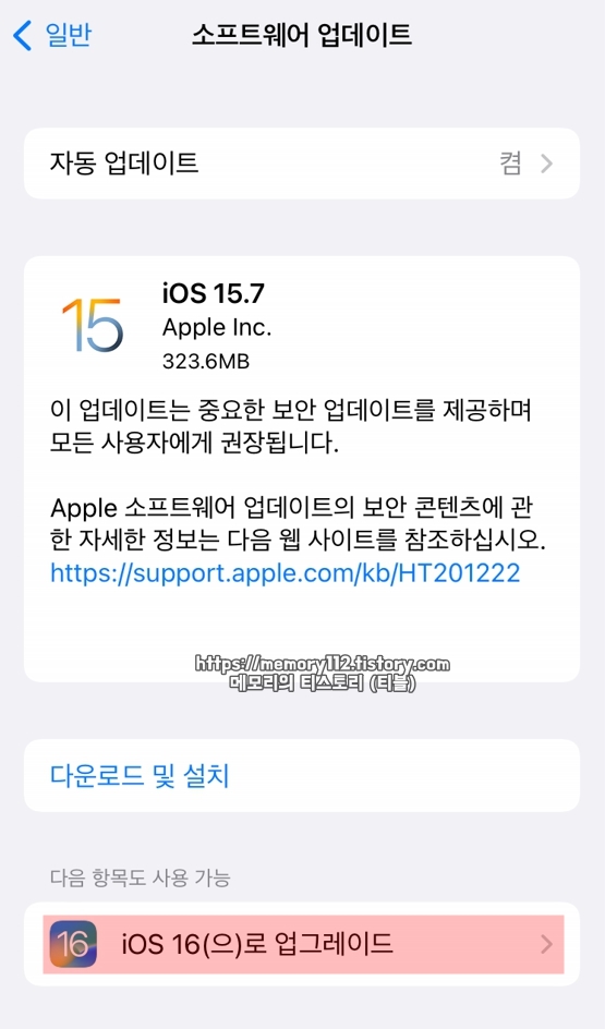 아이폰 iOS 16 소프트웨어 업데이트 방법 끝.