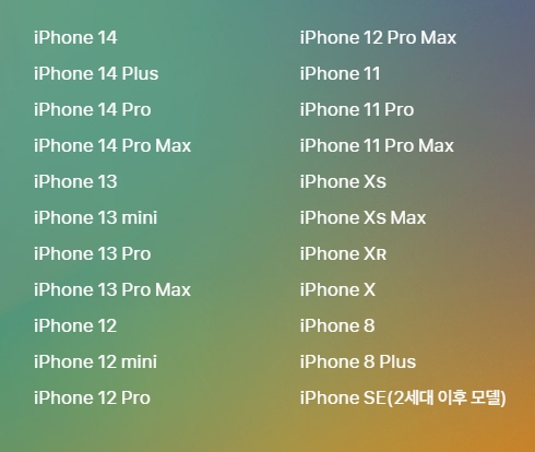 아이폰 ios 16 업데이트 대상 및 호환 휴대폰은 위 사진을 참고하세요.