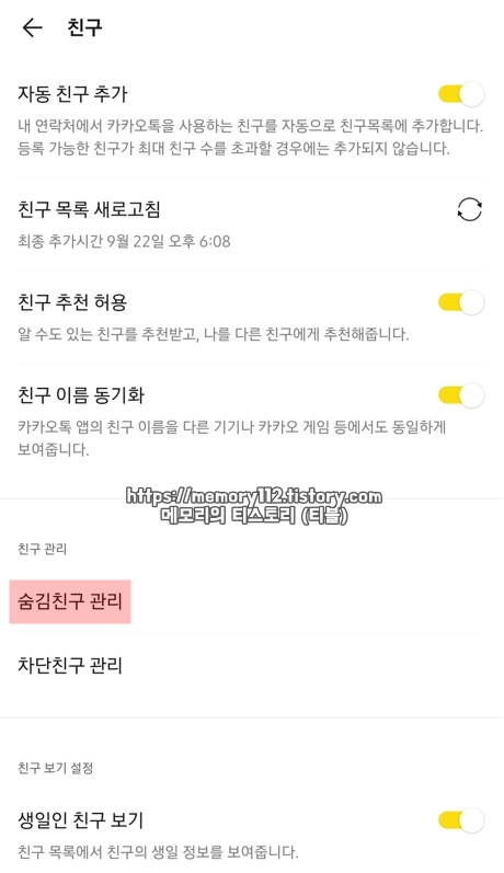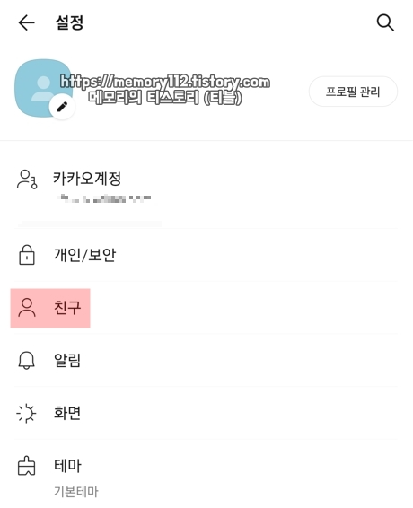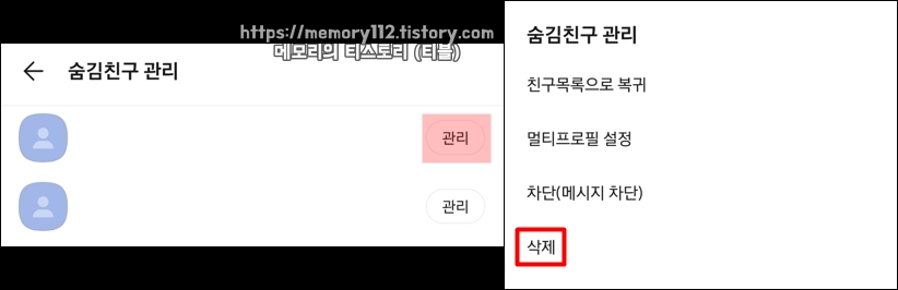 친구 관리에 보이는 '숨김친구 관리'를 눌러줍니다.