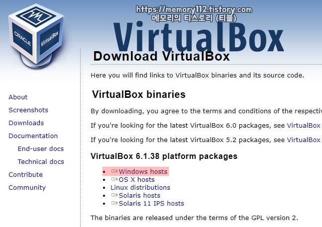 이어서 버추얼박스 설치 파일을 다운로드해줍니다.