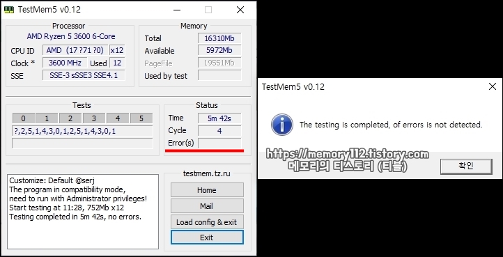 TM5(TestMem5) 램 안정화 테스트 방법