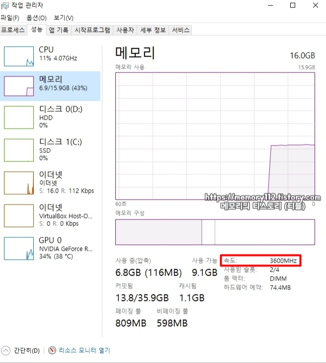 램 오버 실패 대표 증상은 램 오버 이전에는 발생하지 않던 게임 렉, 작업 처리 속도가 느려지고 끊기는 현상입니다.