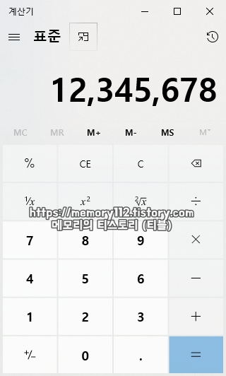 사용 지역 언어 설정 변경을 완료했다면, 이제 계산기를 실행해 숫자 콤마가 제대로 찍히는지 확인해 봅니다.