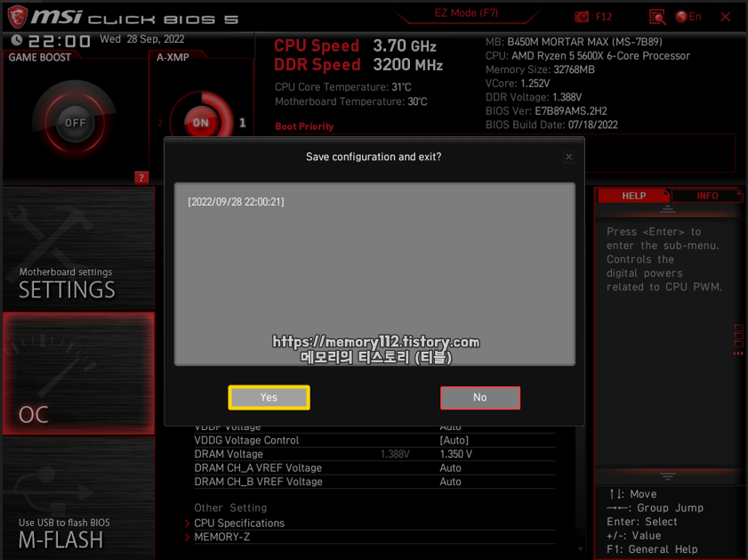 2022.09.29 - [# IT 인터넷] - 라이젠 램 오버클럭 방법 (MSI 메인보드)