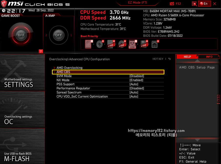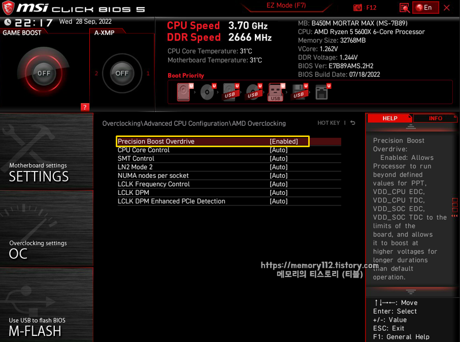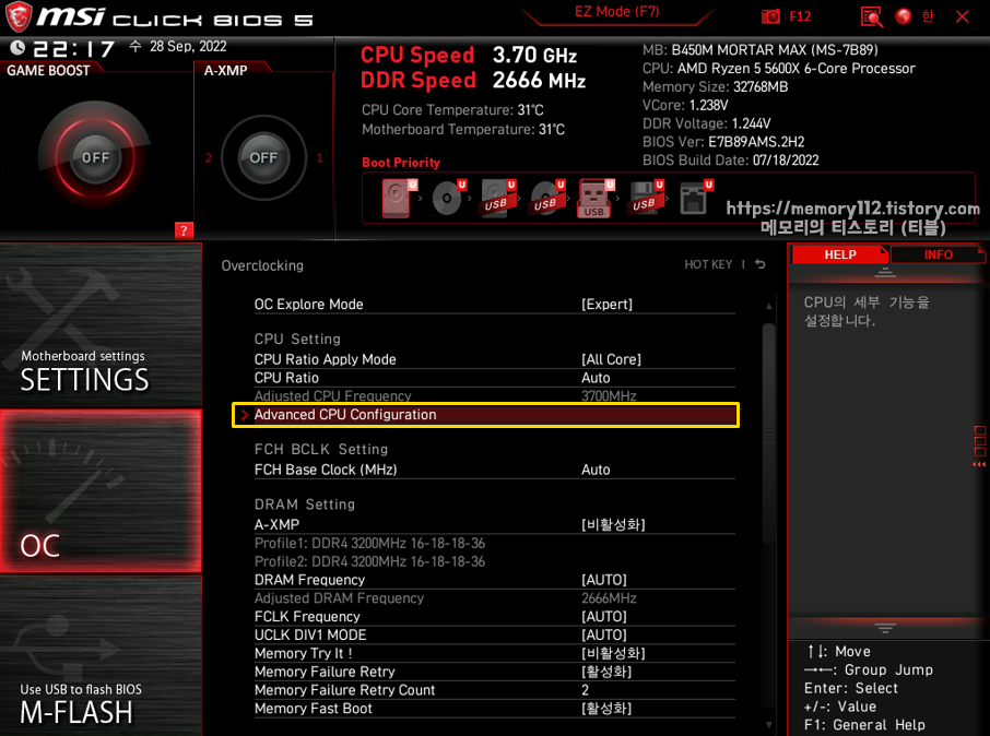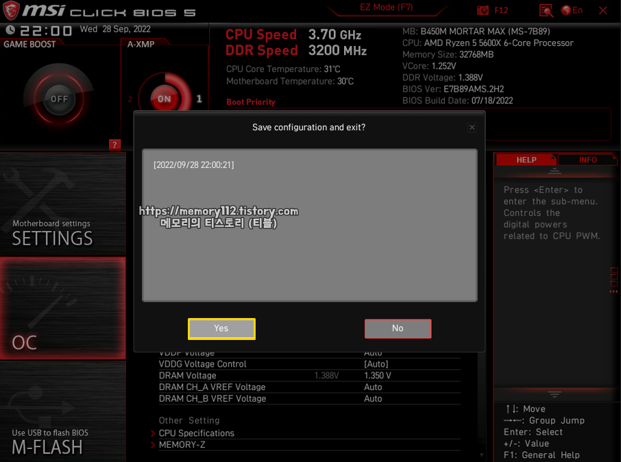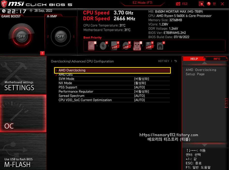 2022.09.29 - [# IT 인터넷] - 라이젠 램 오버클럭 방법 (MSI 메인보드)
