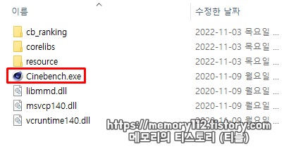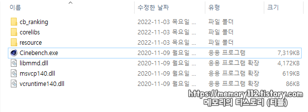 압축 풀기를 완료했다면, 시네벤치.exe를 실행해줍니다.