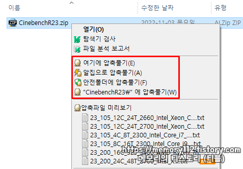 시네벤치R23.zip 파일을 다운로드해줍니다. 참고로 파일 용량은 250MB입니다.