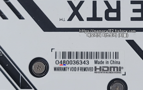 그리고 20년 08월 이후 만들어진 제품 같은 경우에는 그래픽카드 제조 연도를 한 글자로 표시하게 됩니다. "O48"에서 4는 2021년도를 뜻하고, 8은 8월을 뜻합니다. 그래서 해당 그래픽 카드는 제조 연월이 2021년 08월인 것이죠.
