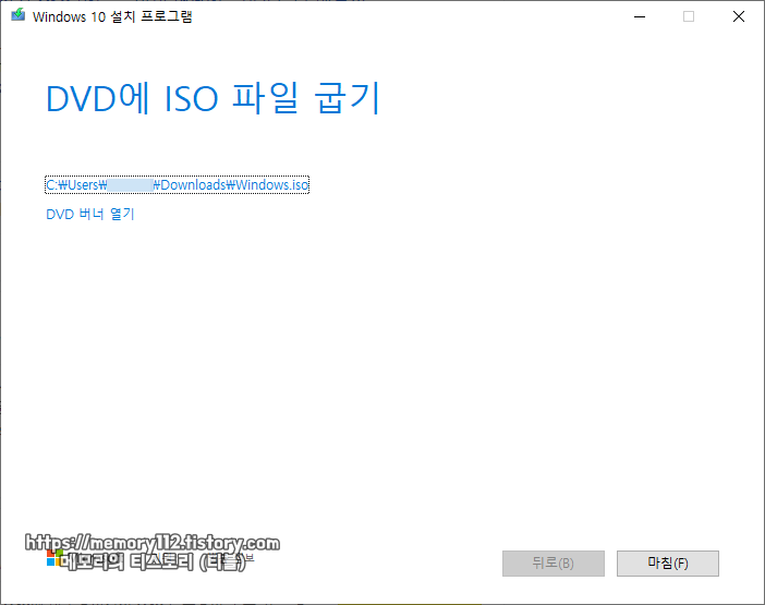 해당 파일을 공 CD/DVD에 넣거나 USB 플래시 드라이브에 넣어 윈도우10 포맷을 할 수 있습니다. (CD 굽기 전용 프로그램 이용 필요)
